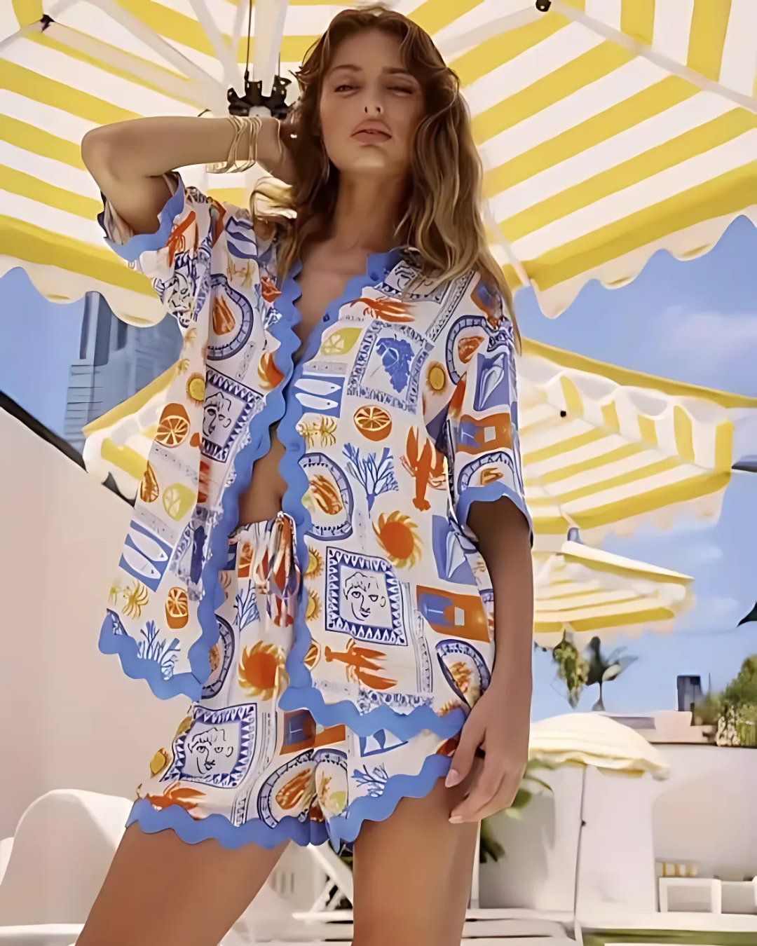 Lace Wave Breeze Shirt Set