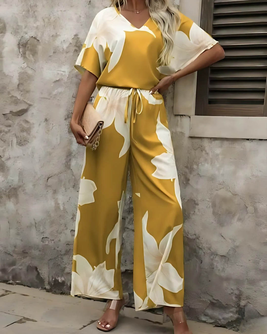Made from jacquard fabric, the set offers a structured yet refined drape